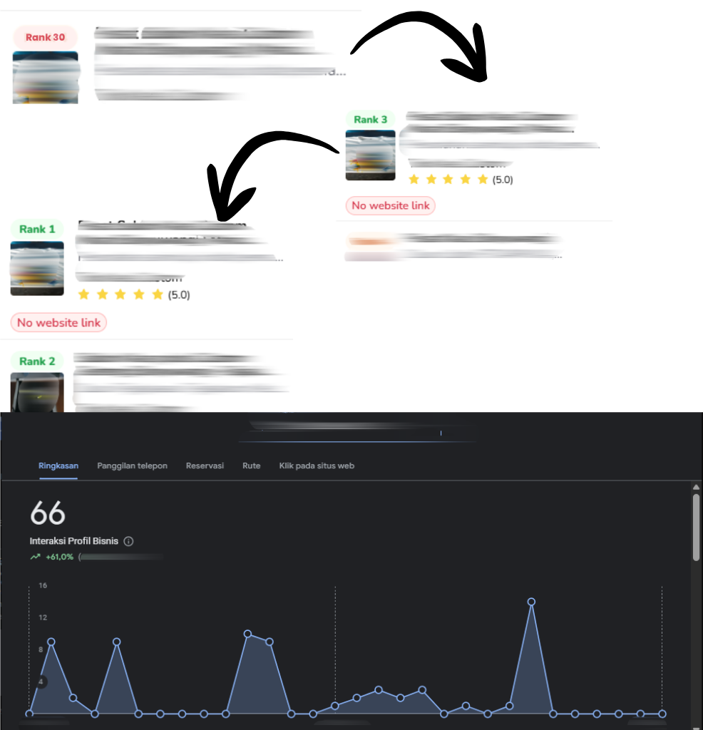 Cek posisi bisnis Anda di Google Maps atau pencarian lokal. Jika belum masuk peringkat atas, segera optimalkan website maupun profil bisnis Anda.
